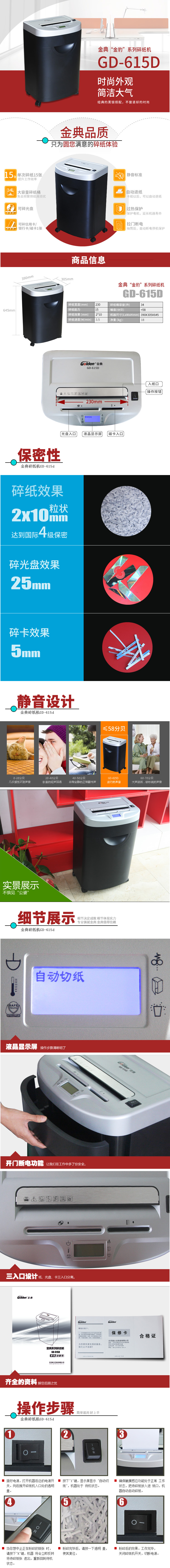 • 商品名稱:金典(GOLDEN)GD-615D 碎紙機 商用碎紙機 高保密碎紙機 國家二級保密認證(kj)
