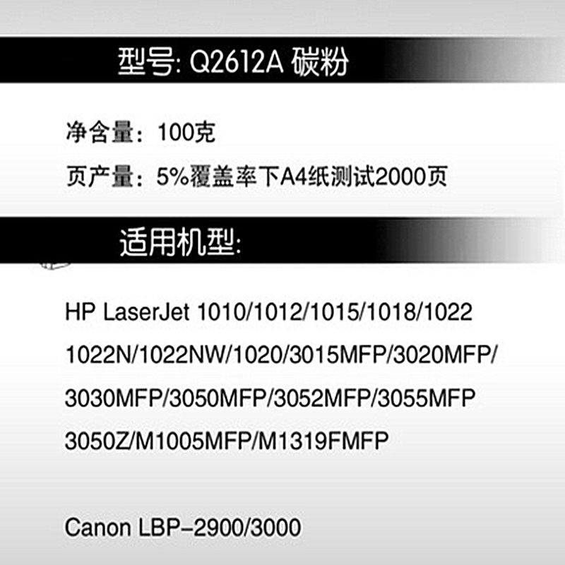 - 商品名稱:格之格 NT-T2612A 碳粉 添加粉 適用于hp 1010,1012,1015,1018,1020,1020plus,1022,3015,3020,3030,3050,3052,3055,M1005mfp,M1319fmfp,佳能303 2900 100g/支 黑色(kj)