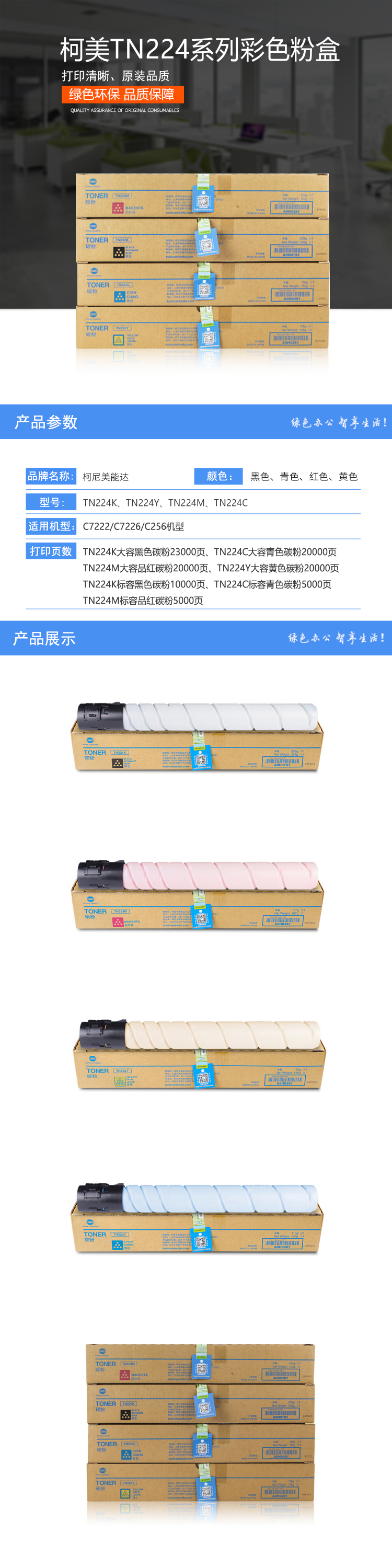 • 商品名稱:柯尼卡美能達(KONICA MINOLTA)TN224M 小容量紅粉適用于C7222/C7226/C256 TN224(KJ)