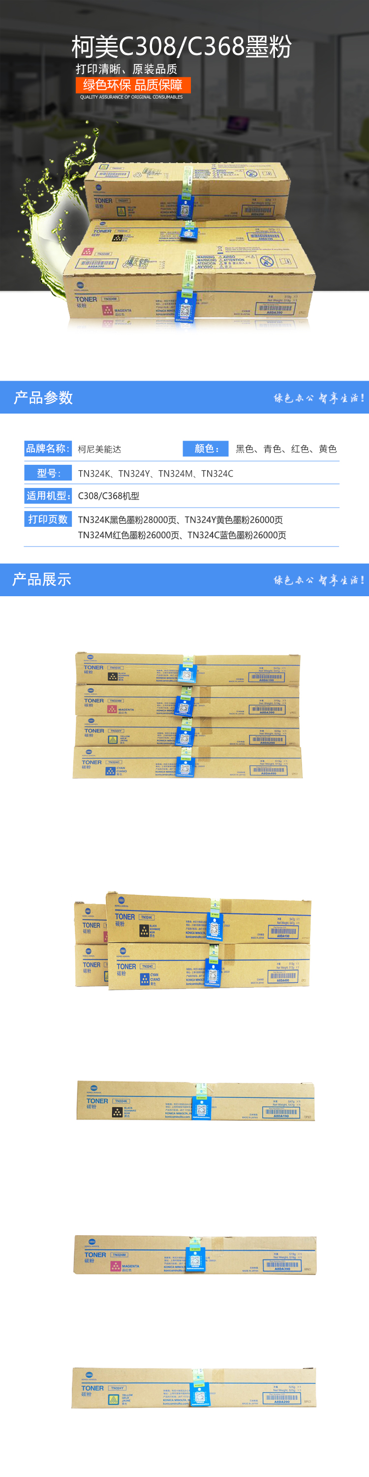 - 商品名稱:柯尼卡美能達(dá)(KONICA MINOLTA)TN324Y 黃色碳粉 TN324 適用于C308/C368 (KJ)