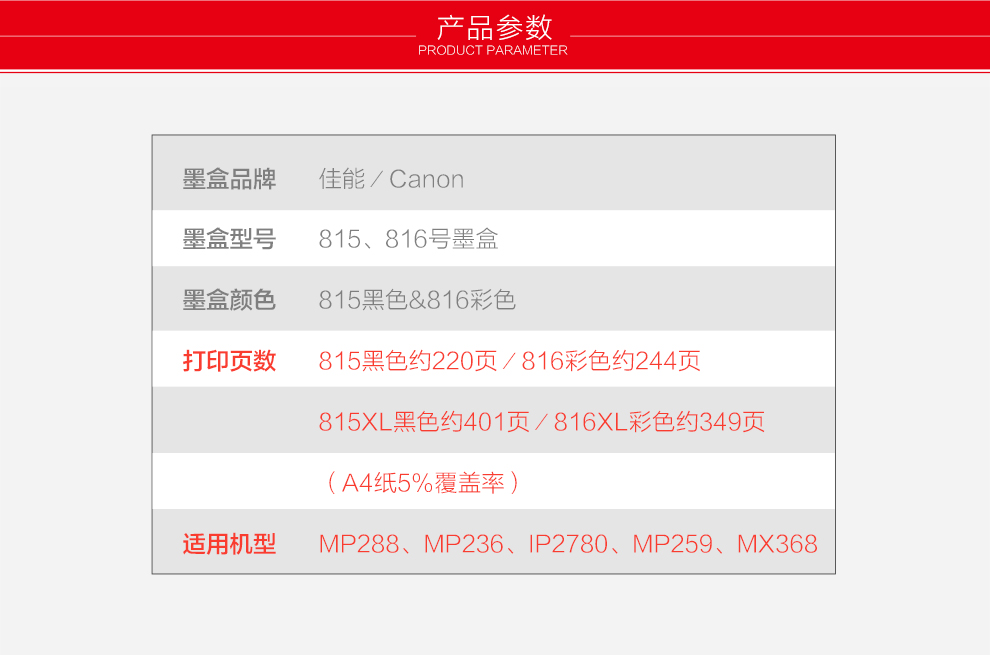 • 型號:PG-815 黑色墨盒