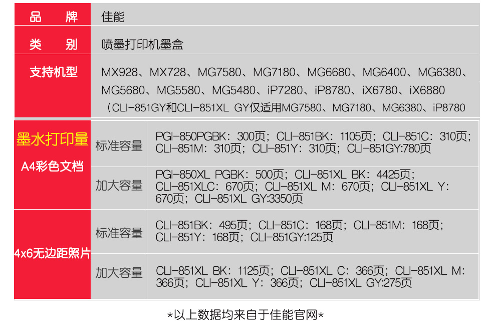 • 商品名稱:佳能(Canon) CLI-851GY 灰色墨盒 CLI-851 (適用MX928、MG6400、iP7280、iX6880)(kj)