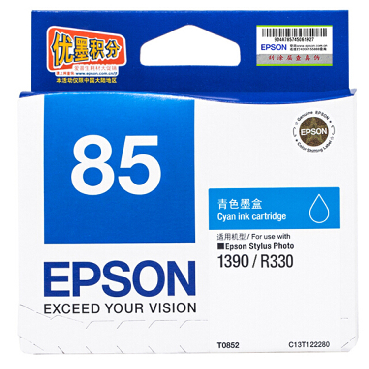 • 商品名稱:愛普生(EPSON)T0852 青色墨盒 適用于1390 R330