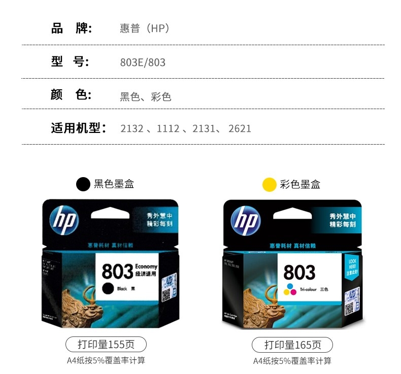 惠普(HP)F6V21AA 803 黑色墨盒 (適用Deskjet1112 2132 1111 2131)(kj)