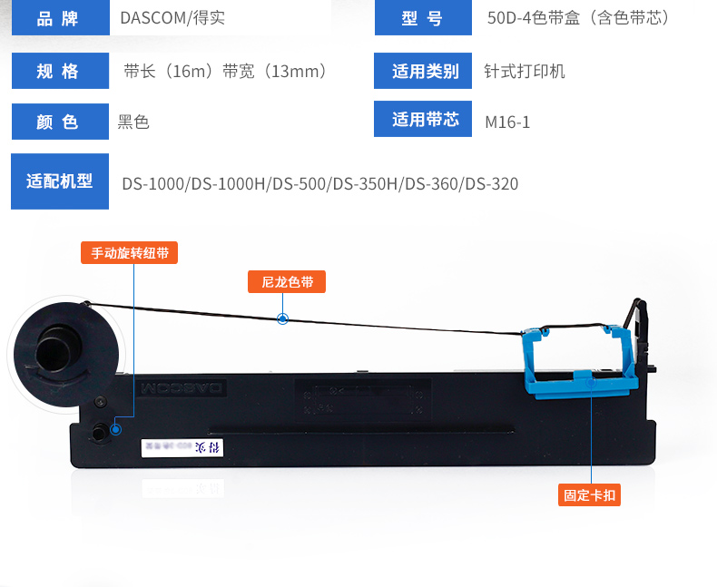 得實(shí) (Dascom) 50D-4 色帶架 適用DS-1000 DS-1000H DS-500 DS-350H DS-360 DS-320 適Aisino愛(ài)信諾50A-4 AisinoTY-500色帶芯(kj)