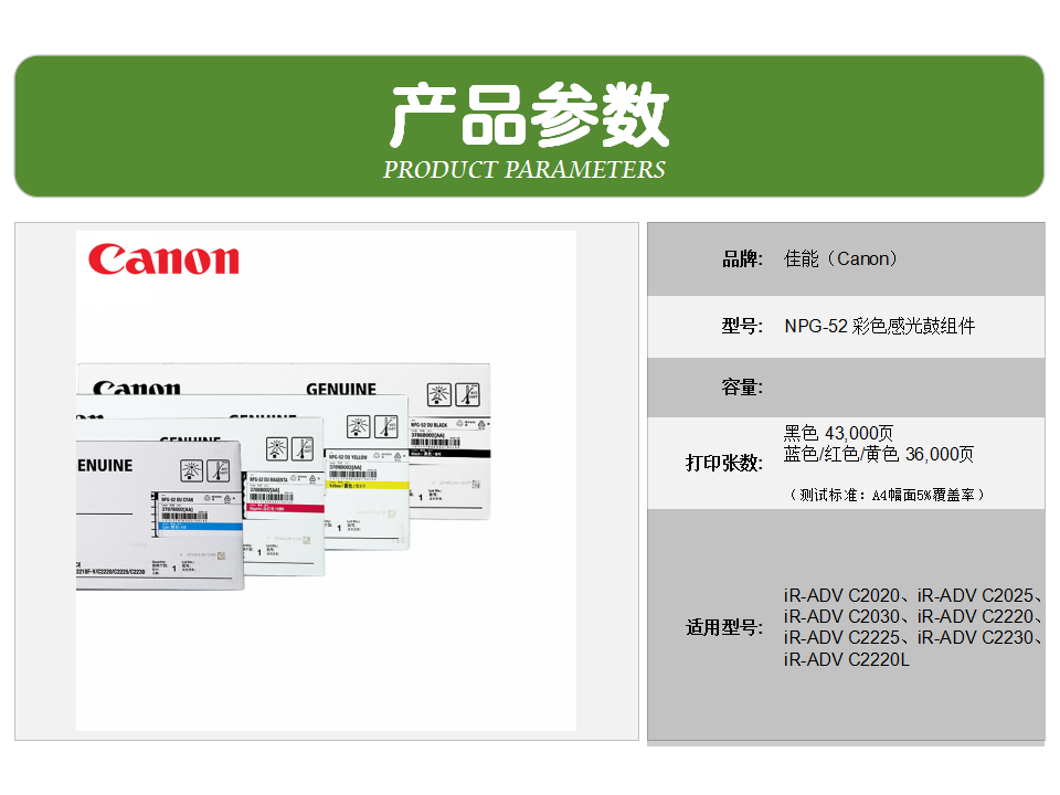 • 商品名稱:佳能(Canon) NPG-52感光鼓組件 彩色硒鼓(適用C2020/C2025/C2225) NPG-52C 藍(lán)色 36000頁(kj)