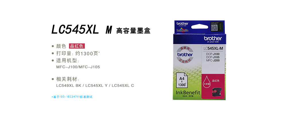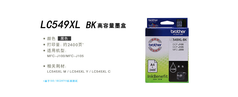 • 商品名稱(chēng):兄弟(brother)原裝545彩色墨盒 549黑色墨盒 適用于DCP-J100 MFC-J200 DCP-J105 4色套裝