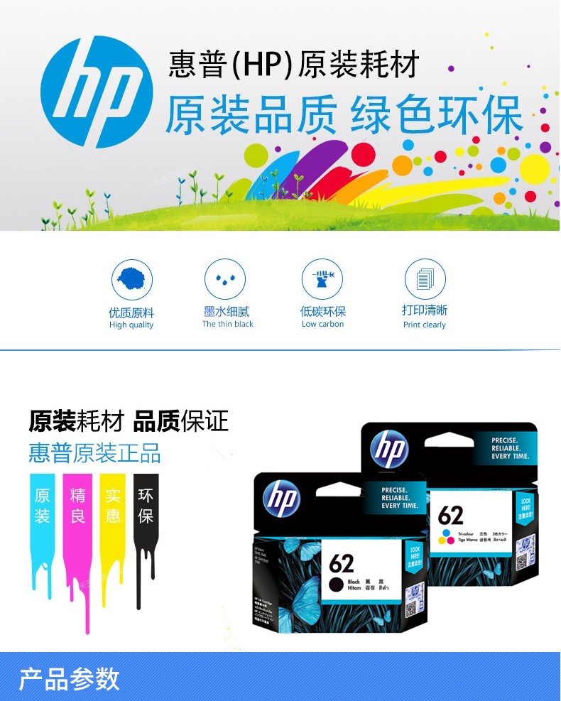 • 型號(hào):惠普(HP) C2P04AA 原裝惠普 62號(hào) 黑墨盒(HP 200 )C2P04AA