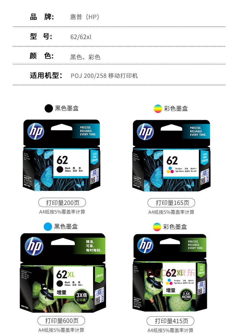 惠普(HP)C2P06AA 62 原裝彩色墨盒 (適用于HP OfficeJet 200 移動打印機(jī))(kj)