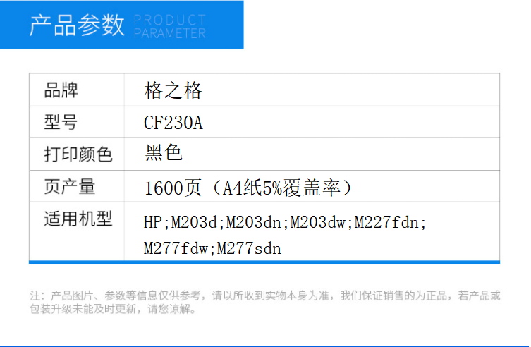 • 商品名稱:格之格 CF230A 硒鼓 NT-PNH230C 適用惠普 M203d M203dn M203dw M227fdn M277fdw M277sdn 203A(kj)