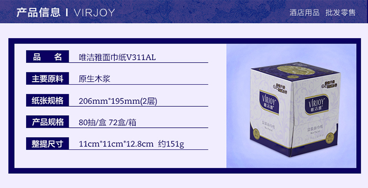 • 商品名稱:唯潔雅 V311AL 盒裝面巾紙 200抽/盒 72盒/箱 單盒價格 1箱起送(kj)