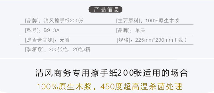 • 商品名稱:清風 擦手紙 綠色包裝 225*230*200張 20包/箱 單包價格 1箱起送(kj)