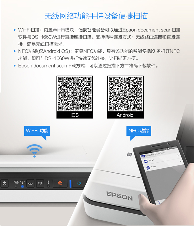 • 商品名稱:愛(ài)普生(EPSON) DS-1660W A4 ADF+平板 25ppm高速彩色文檔掃描儀 Wifi無(wú)線掃描 自動(dòng)進(jìn)紙