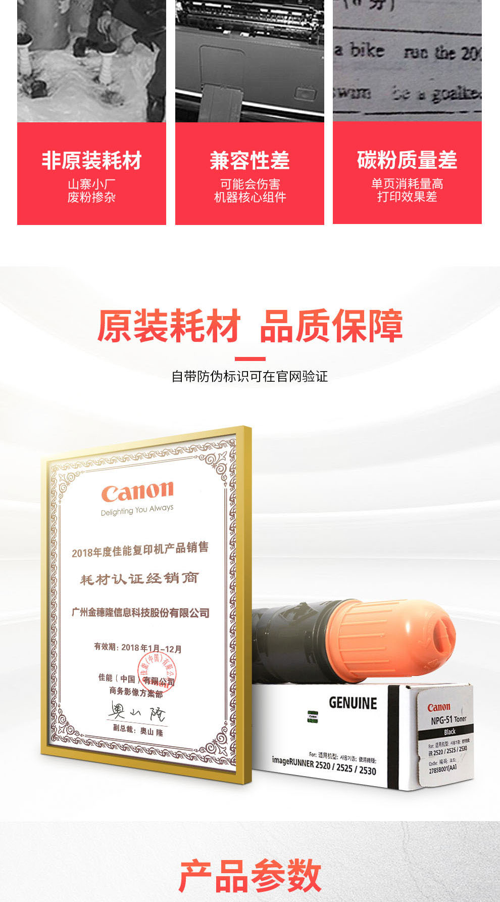 • 商品名稱:佳能(Canon)碳粉NPG-51適用于iR2520i/2525i/2525/2530i/2520(kj)