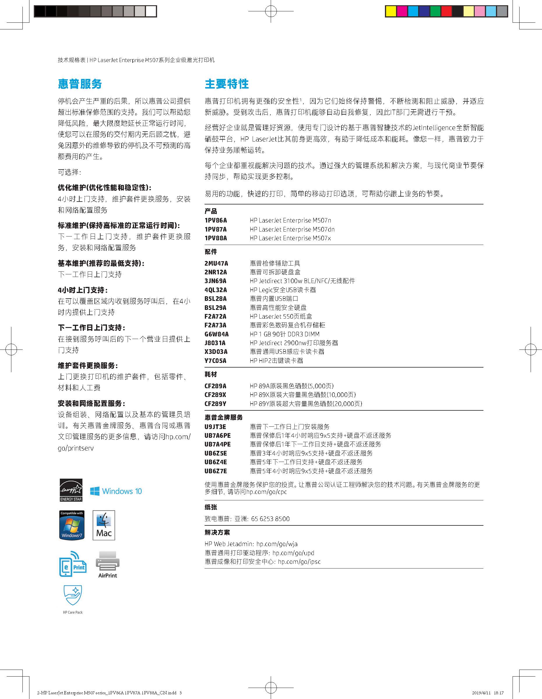 • 商品名稱:惠普(HP)LaserJet Enterprise M507dn A4黑白激光打印機