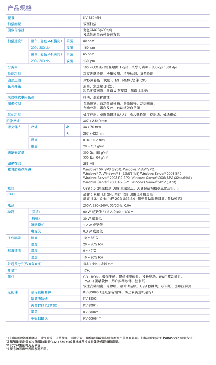 • 商品名稱:松下(Panasonic)KV-S5046H高速掃描儀A3幅面/雙面/分辨率100-600dpi/黑白:80ppm/160ipm;彩色:80ppm/160ipm/饋紙式 可外接平板/保修一年