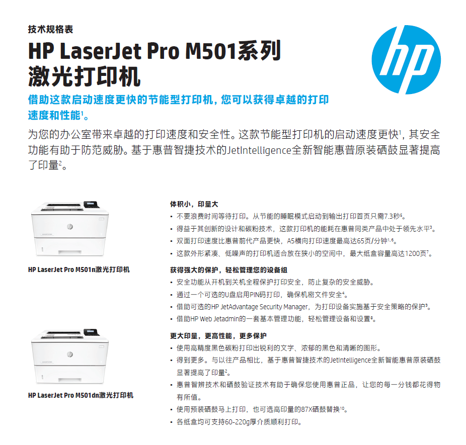 - 型號:LaserJet Pro M501dn