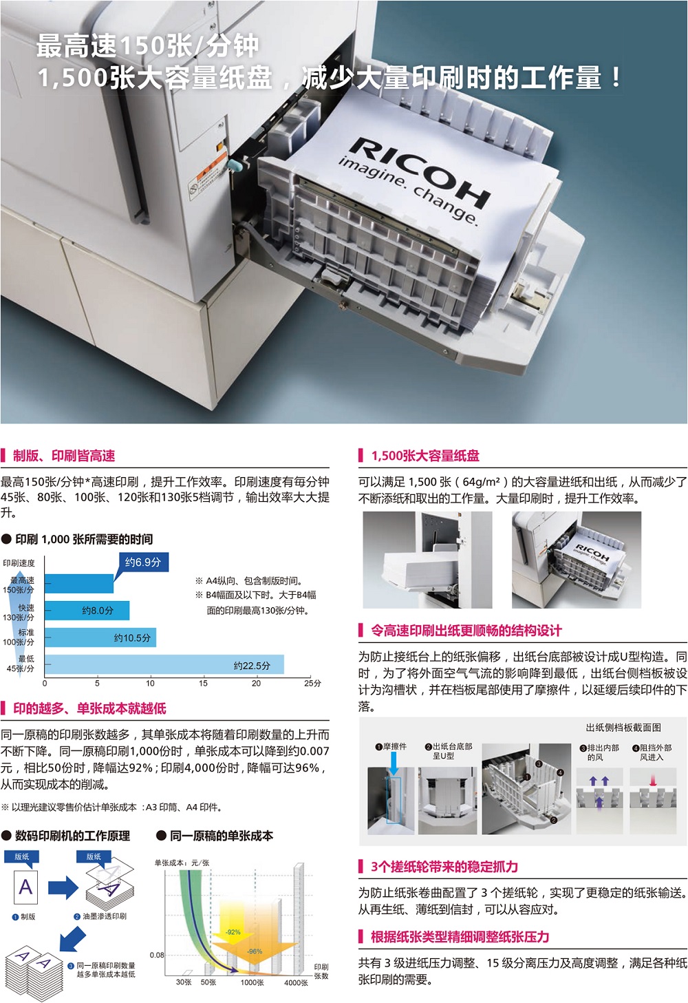 • 印刷速度:45-130共5擋,高150張/分鐘(B4幅面以下)