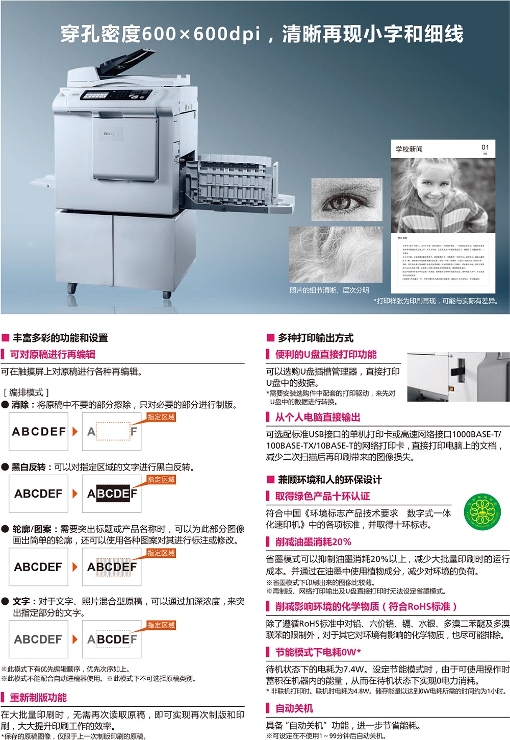 • 適用耗材:B4版紙500型,黑油墨500型