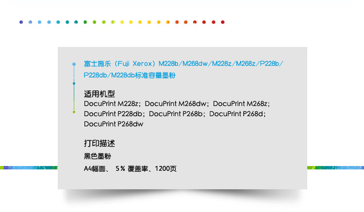 • 商品名稱:富士施樂(Fuji Xerox)CT202331 標準容量粉盒 適用于M228b/M268dw/M228z/M268z/P228b/P228db/M228db(kj)