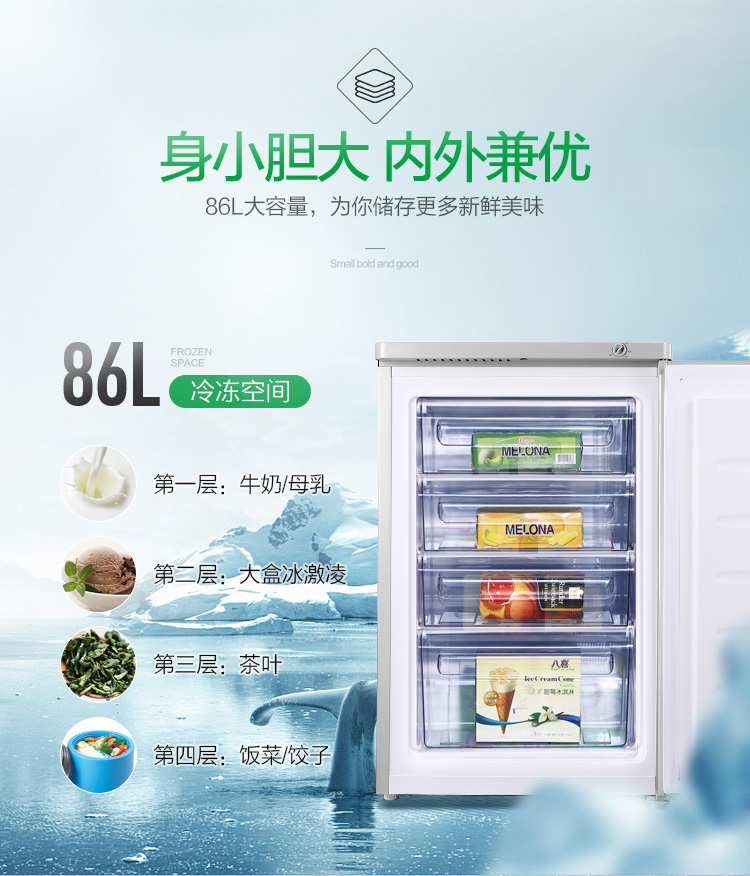 • 商品名稱:容聲(Ronshen) 86升 家用冰箱 一級能效BD-86KTE