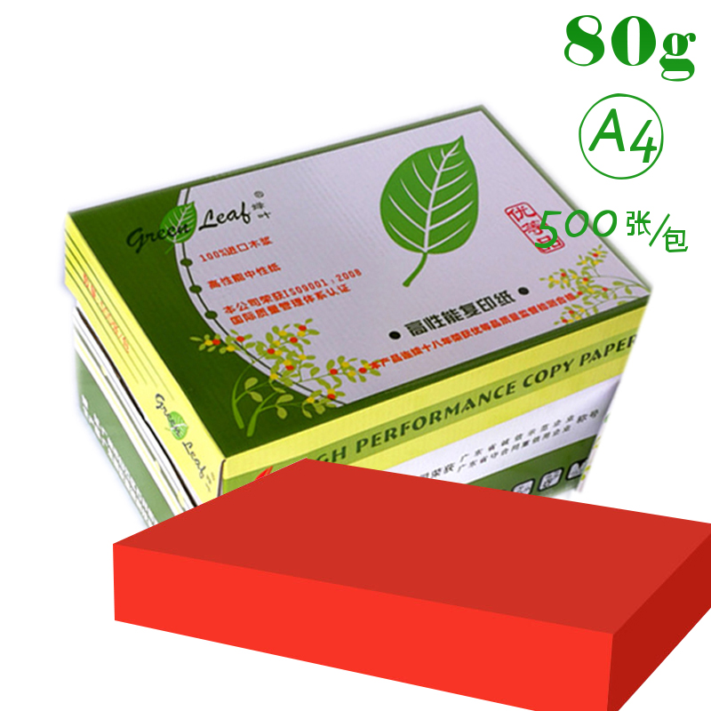 綠葉 A4 80g 彩色復印紙 500張/包(大紅)