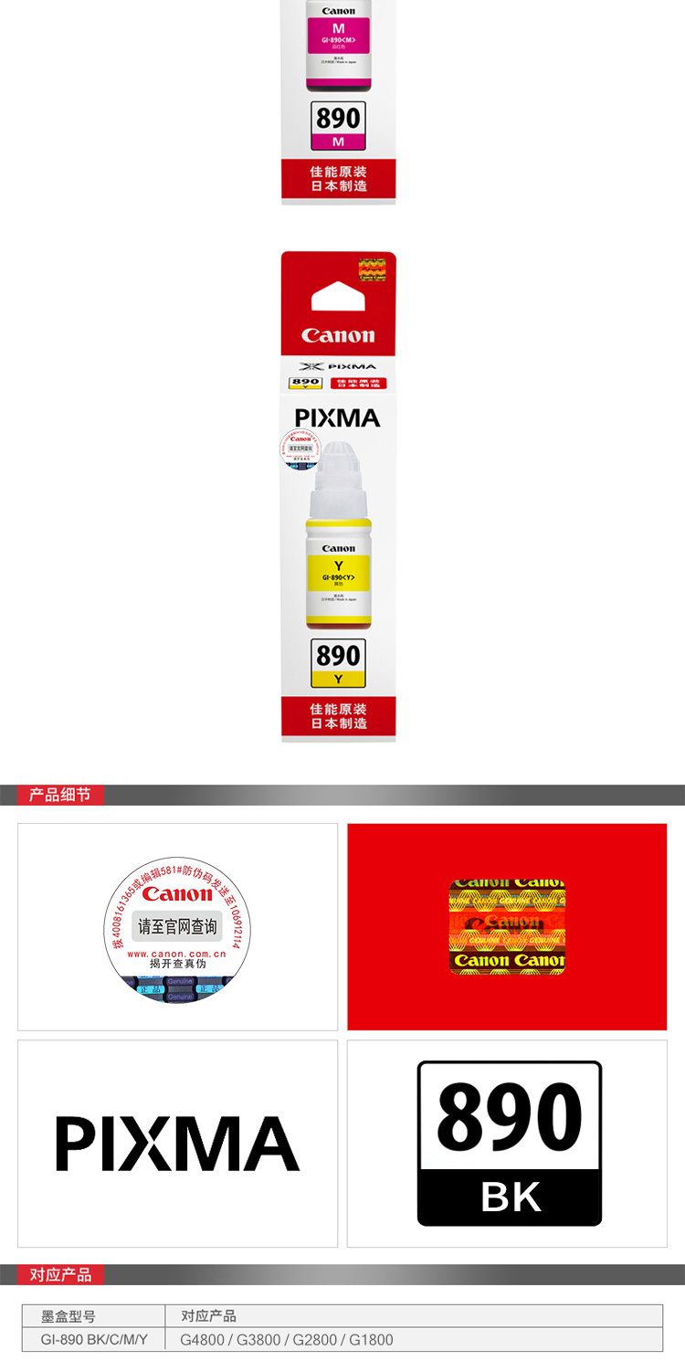 • 商品名稱:佳能(Canon)GI-890 Y 黃色墨水(適用G4800、G3800、G2800、G1800)