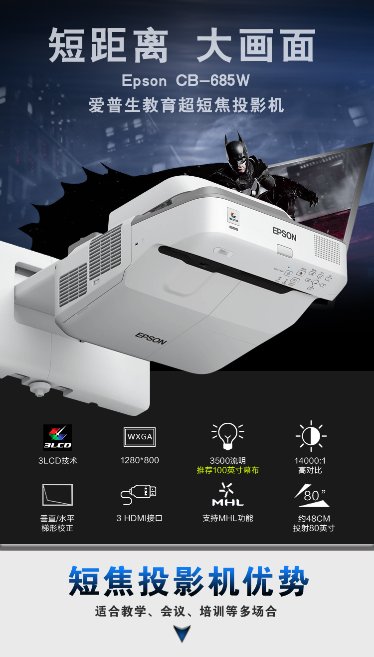 • 商品名稱:愛普生(EPSON)投影機 CB-685W投影儀