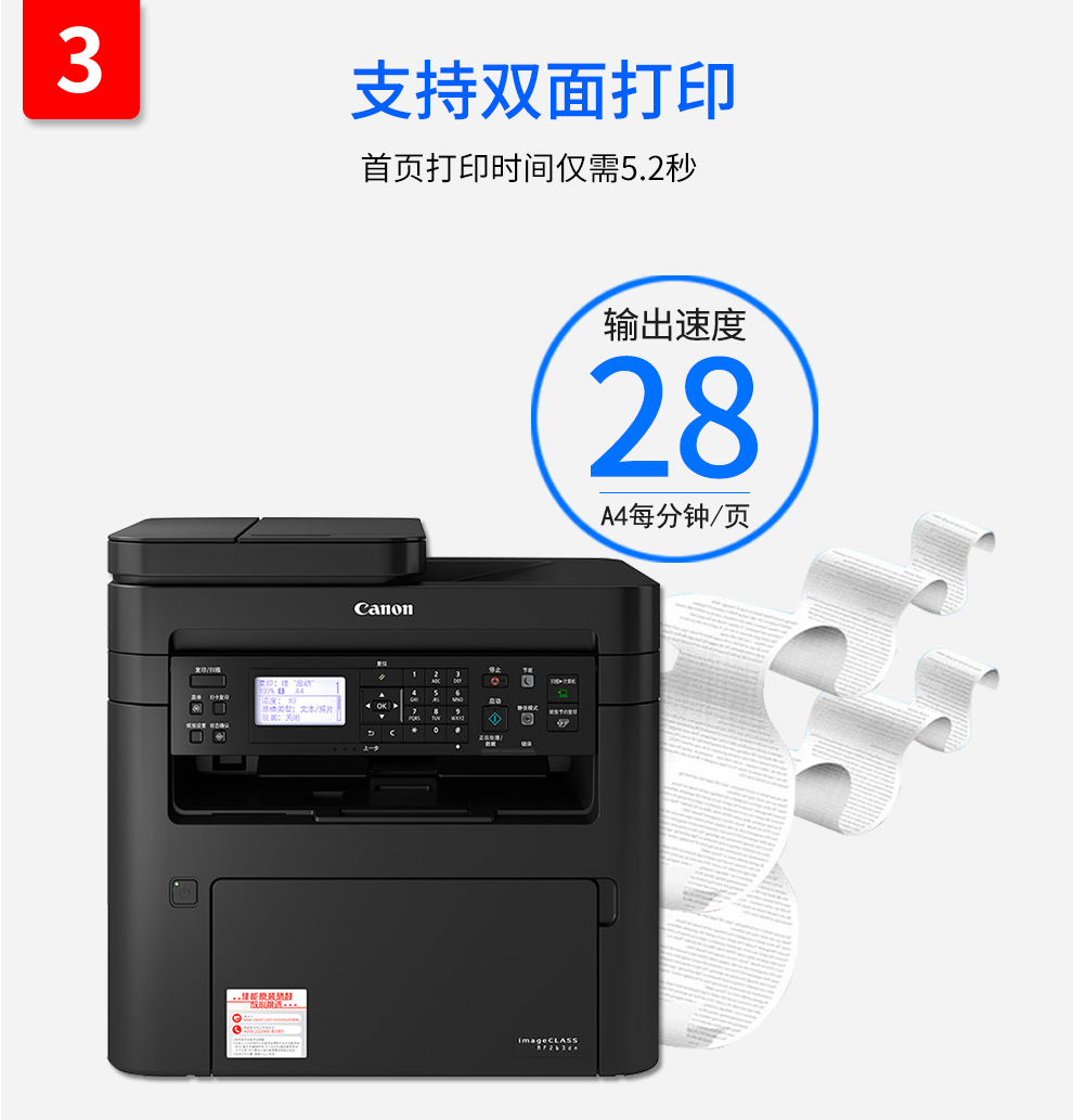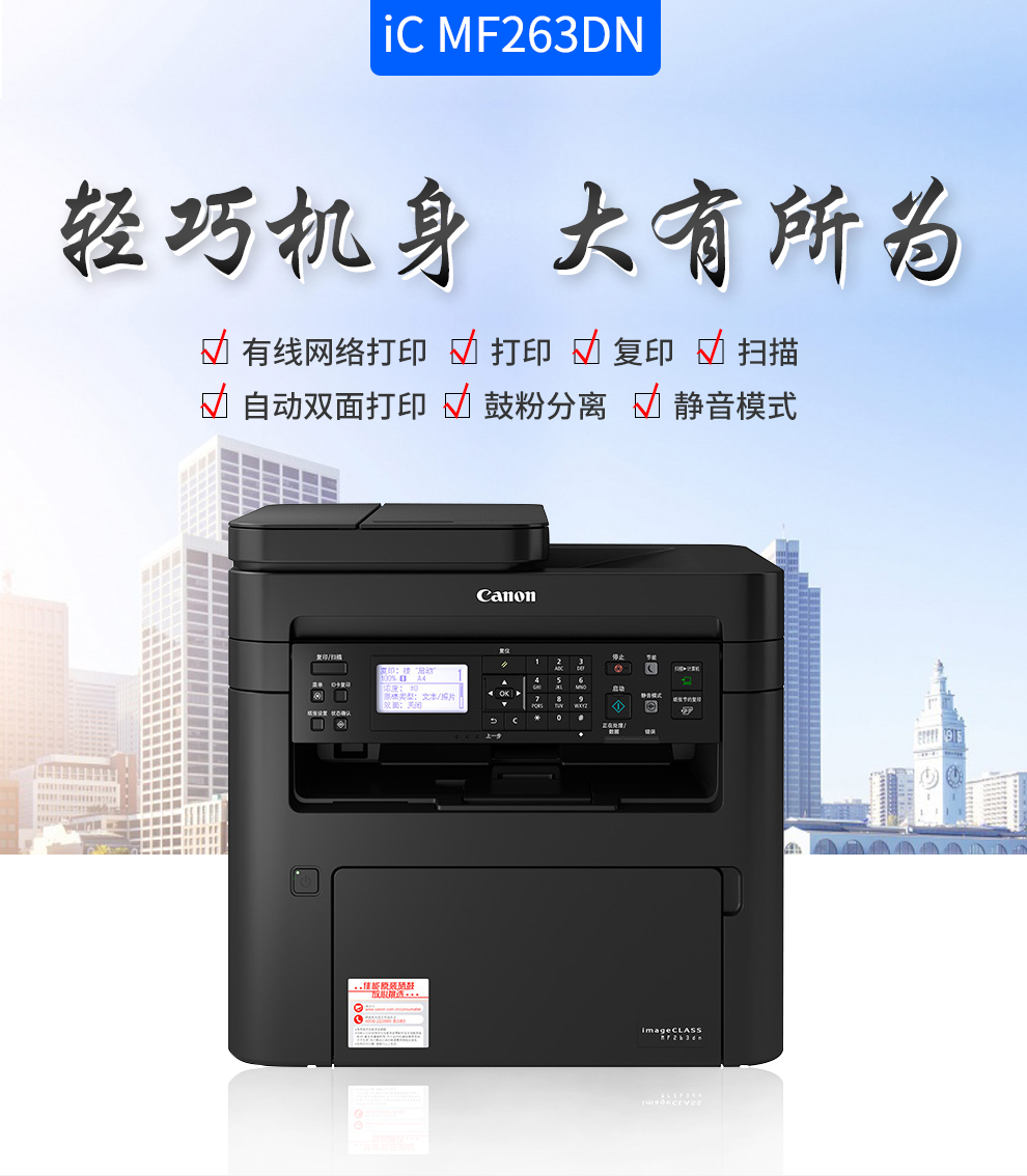 • 商品名稱:佳能(Canon)imageCLASS MF263dn A4激光多功能一體機