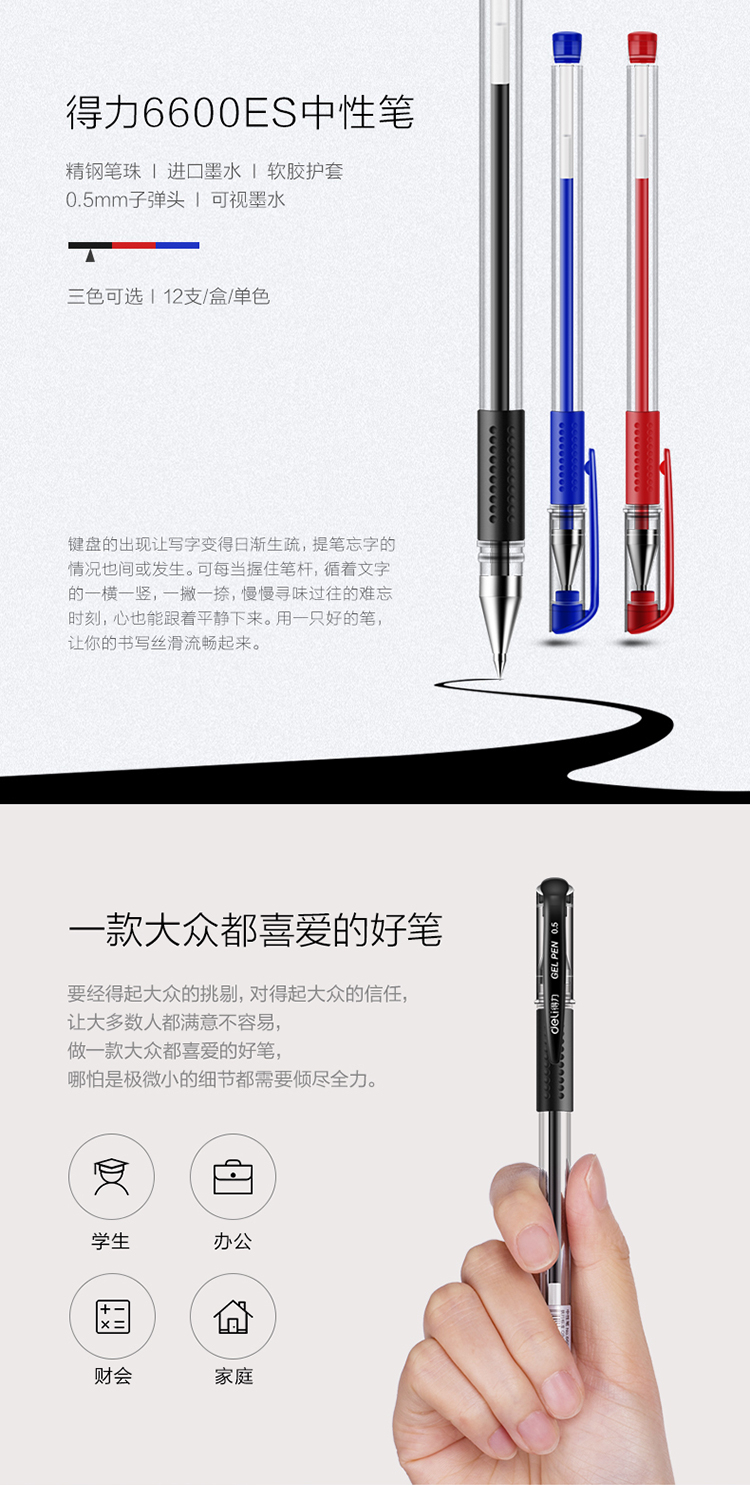 • 商品名稱:得力 6600ES 0.5mm中性筆 12支/盒 (單位:支) 藍(lán)(kj)