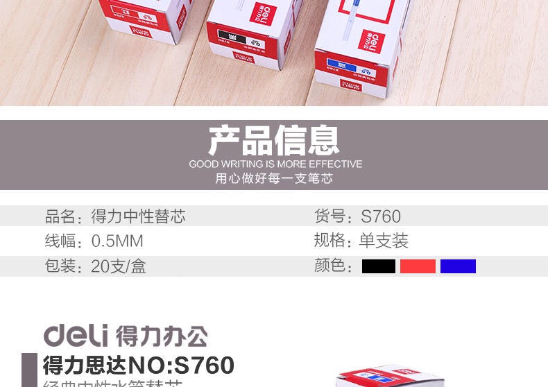 • 型號(hào):得力 中性筆芯 S760 0.5MM 藍(lán)色
