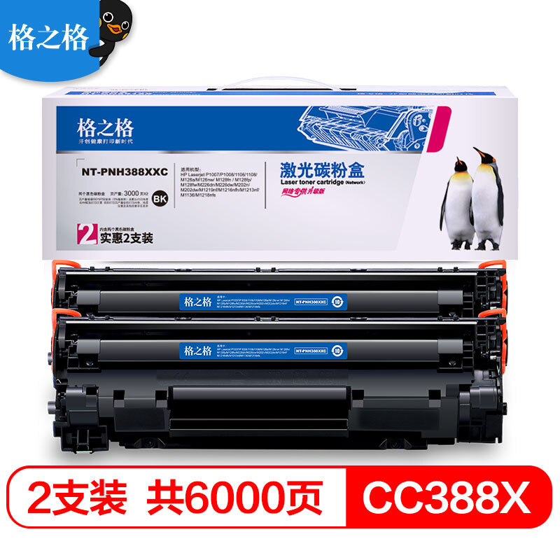 • 商品名稱:格之格 NT-CC388X 硒鼓 大容量 雙支裝 適用于惠普P1108 p1106 1007 m1136 m126a打印機(jī)