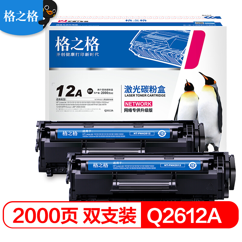 格之格 Q2612A硒鼓2支裝 NT-PNH2612 適用惠普1010 1012 1015 1018 1020 1022 3015 3020佳能2900 3000打印機(jī)