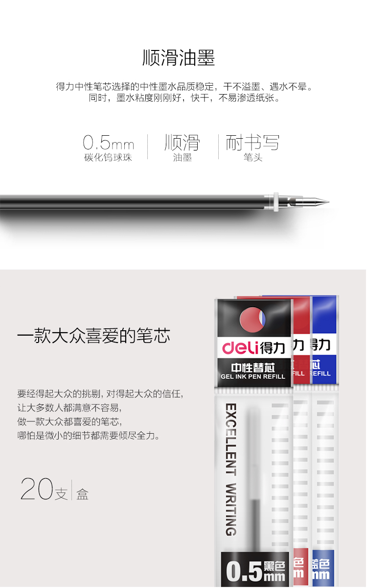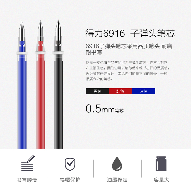 • 型號:得力(deli) 中性筆芯 6916 0.5mm 黑色