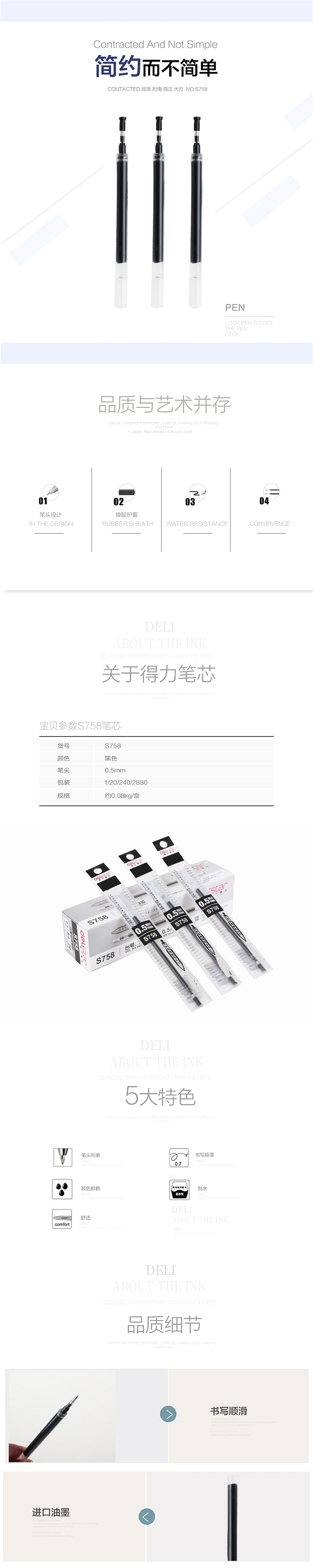 • 商品名稱:得力(deli) 微笑可愛(ài)臺(tái)筆柜臺(tái)桌面筆粘貼固定帶繩中性筆銀行黑色簽字筆芯 0.5mm S758 (kj)
