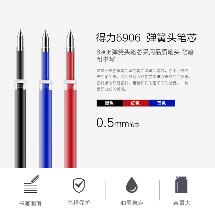 得力按動中性筆芯 6906 0.5mm 黑色(kj)