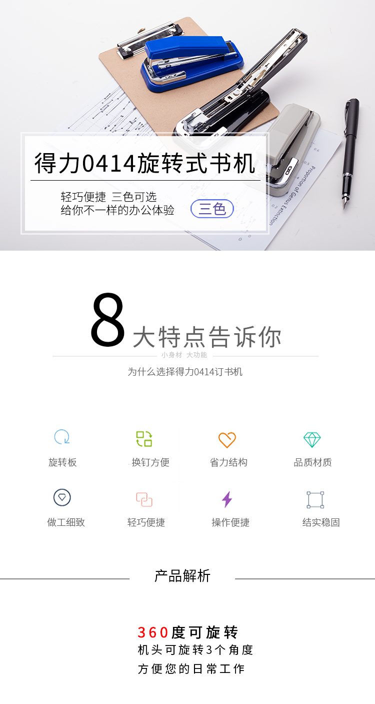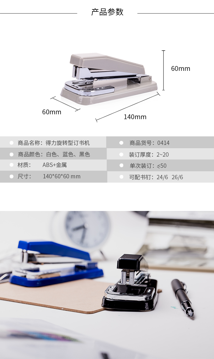 • 規(guī)格:可旋轉(zhuǎn) 24/6 25頁 1/6/60 黑色 藍色 灰色