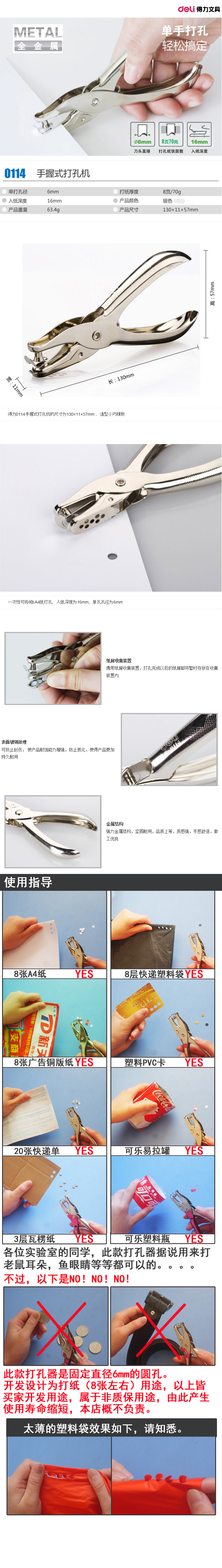 • 型號(hào):得力打孔機(jī) NO.0114 手握式