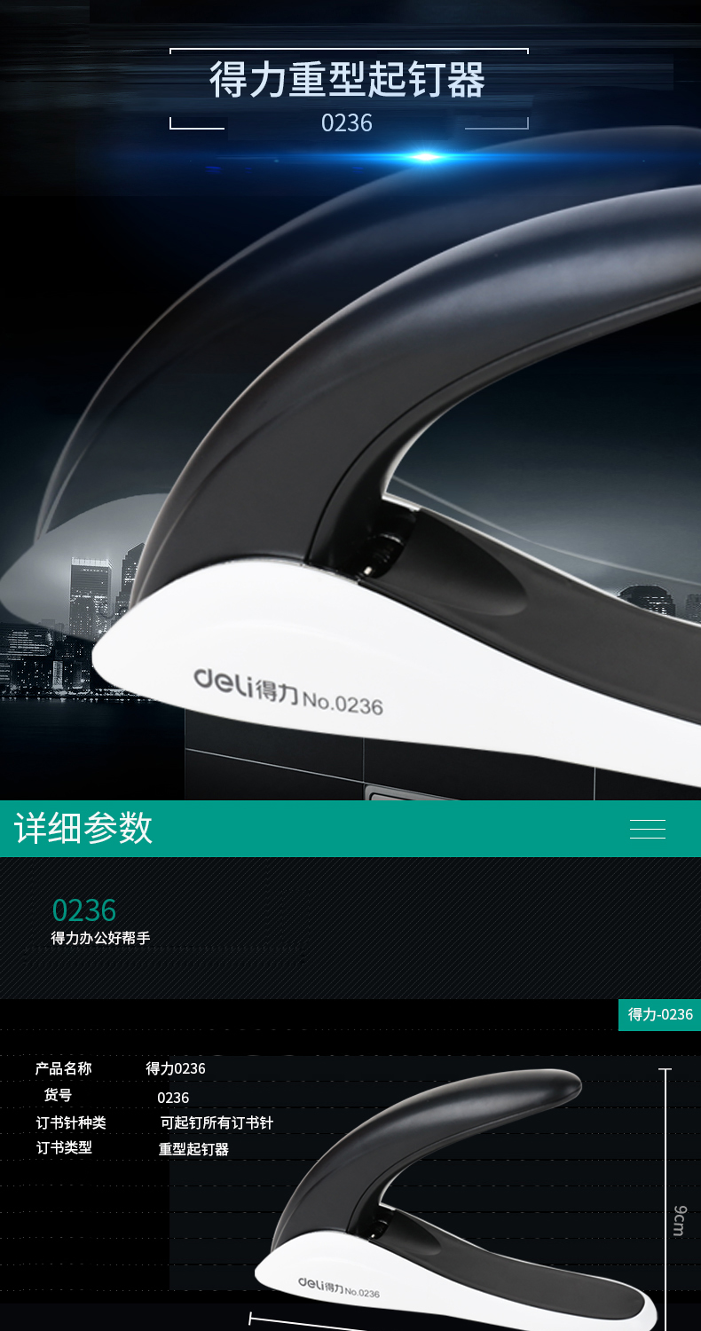 • 商品名稱(chēng):得力(deli) 0236 重型起釘器 訂書(shū)機(jī)訂書(shū)針拔起器 辦公用品 黑色(kj)