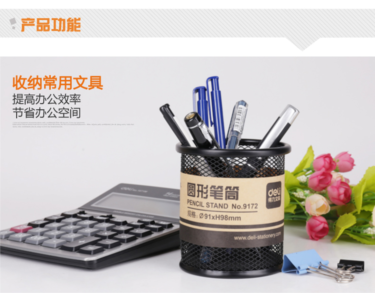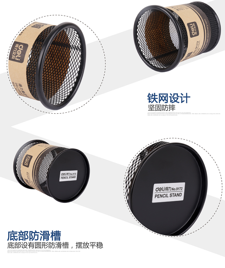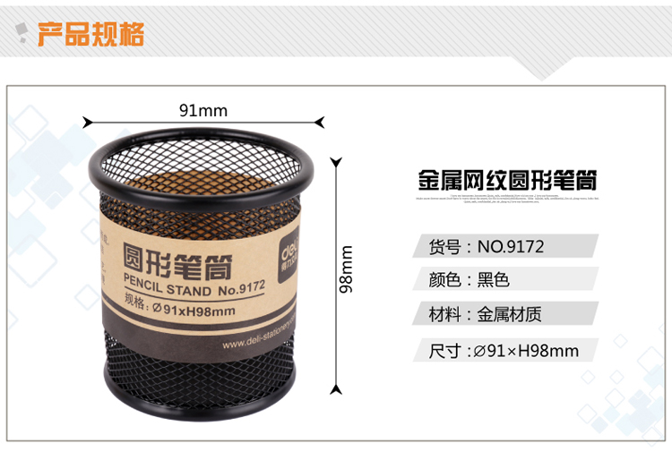 • 型號:得力(deli) 9172 鐵絲圓形金屬網(wǎng)紋筆筒