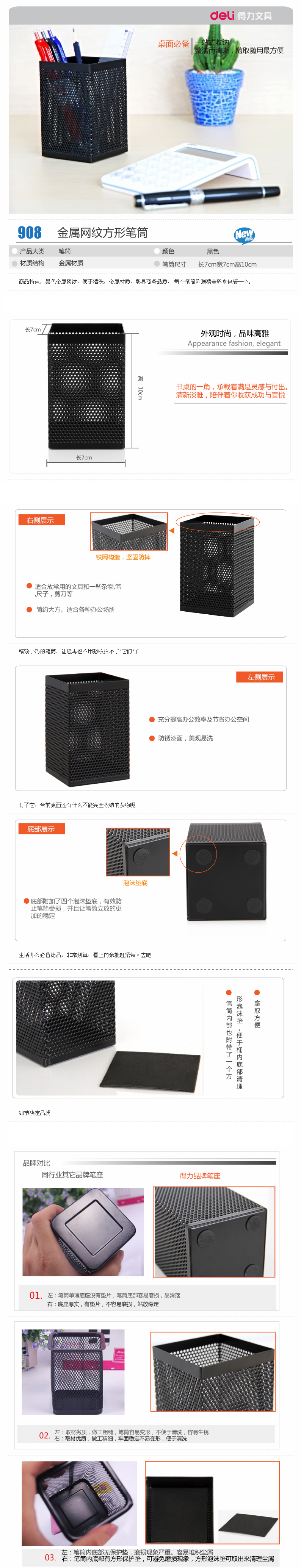 • 型號:得力(Deli)鐵網(wǎng)筆筒 908 方形 黑色