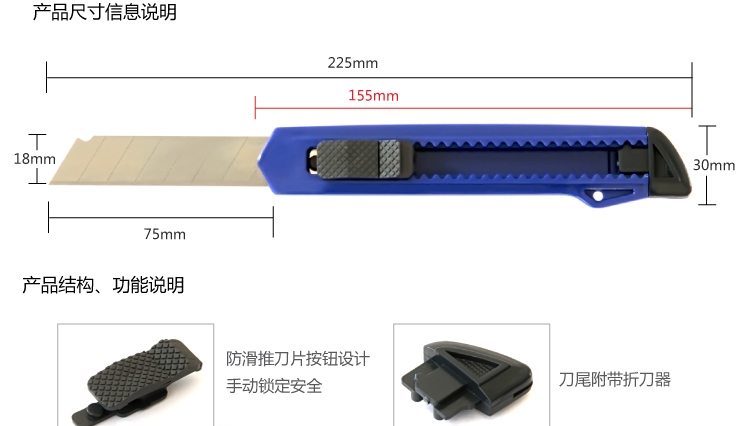 • 商品名稱:得力(deli) 2001 大號(hào)手動(dòng)鎖定美工刀 掛繩孔設(shè)計(jì) 顏色隨機(jī) 辦公用品
