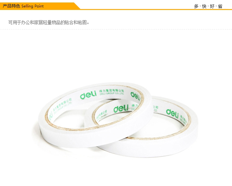 • 型號(hào):得力(Deli) 棉紙雙面膠帶 30401 80um*12mm*10y 24卷/袋