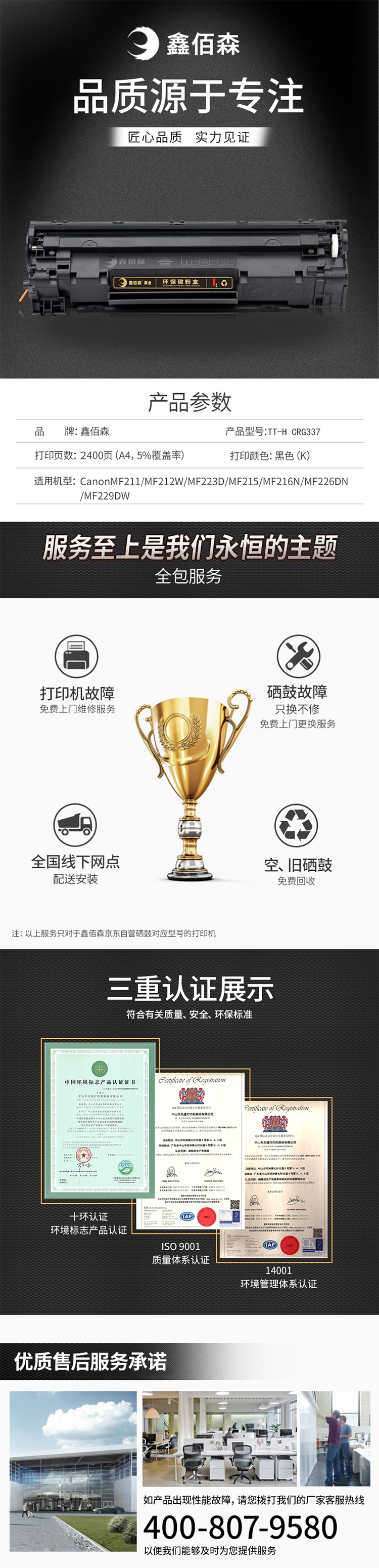 • 商品名稱:鑫佰森 TT-CRG337 硒鼓 黑色 適用于佳能 MF229dw MF216n MF222dw打印機(jī)