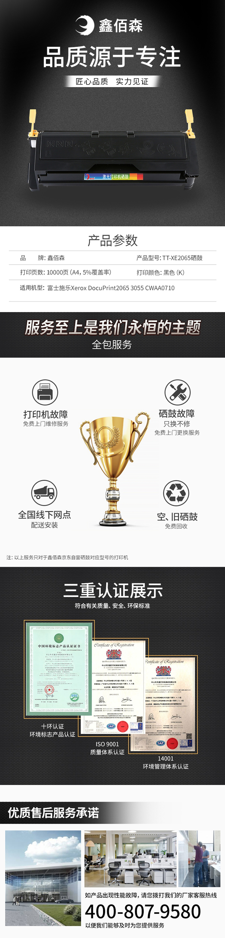• 商品名稱:鑫佰森 TT-XE2065 硒鼓 黑色 適用于富士施樂Fuji Xerox DocuPrint 2065 3055 CWAA0710