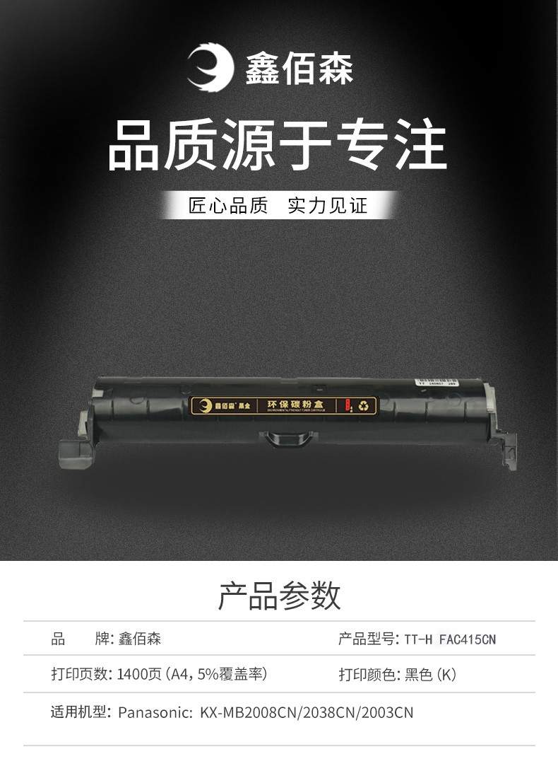• 商品名稱:鑫佰森 TT-FAD91E/296 粉盒 黑色 適用于松下 KX313CN 318 FL323 328打印機(jī)