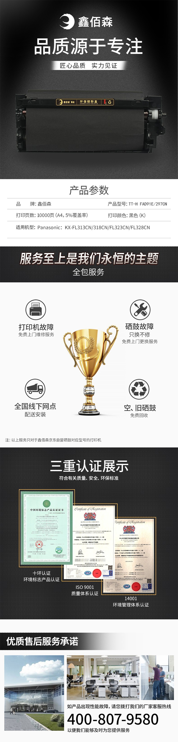 鑫佰森 TT-FAD91E/297 硒鼓 黑色 適用于松下 KX313CN 318 FL323 328打印機