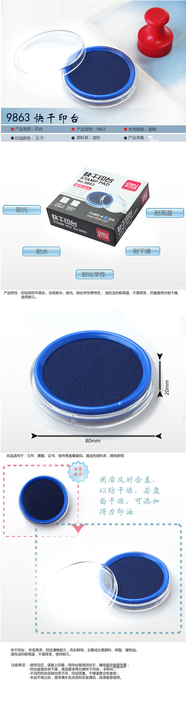 • 型號(hào):得力(Deli) 9863 單色快干印臺(tái) 藍(lán)色