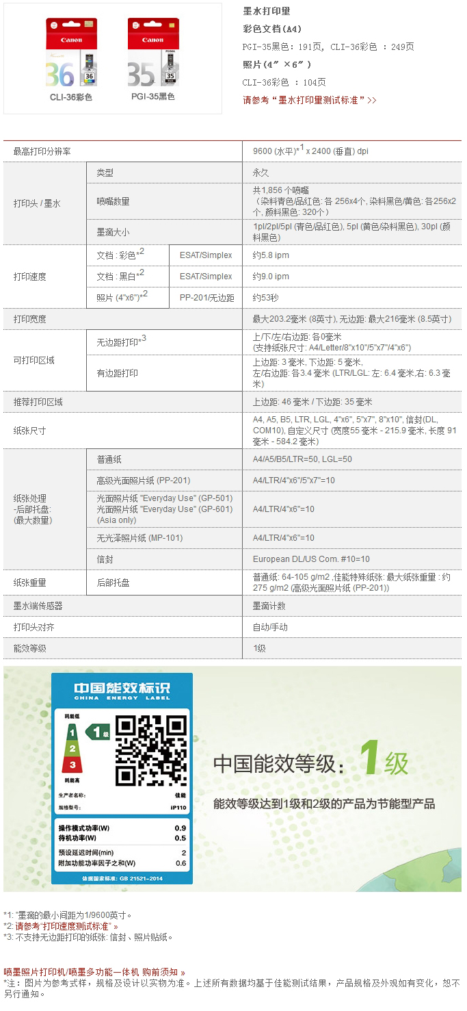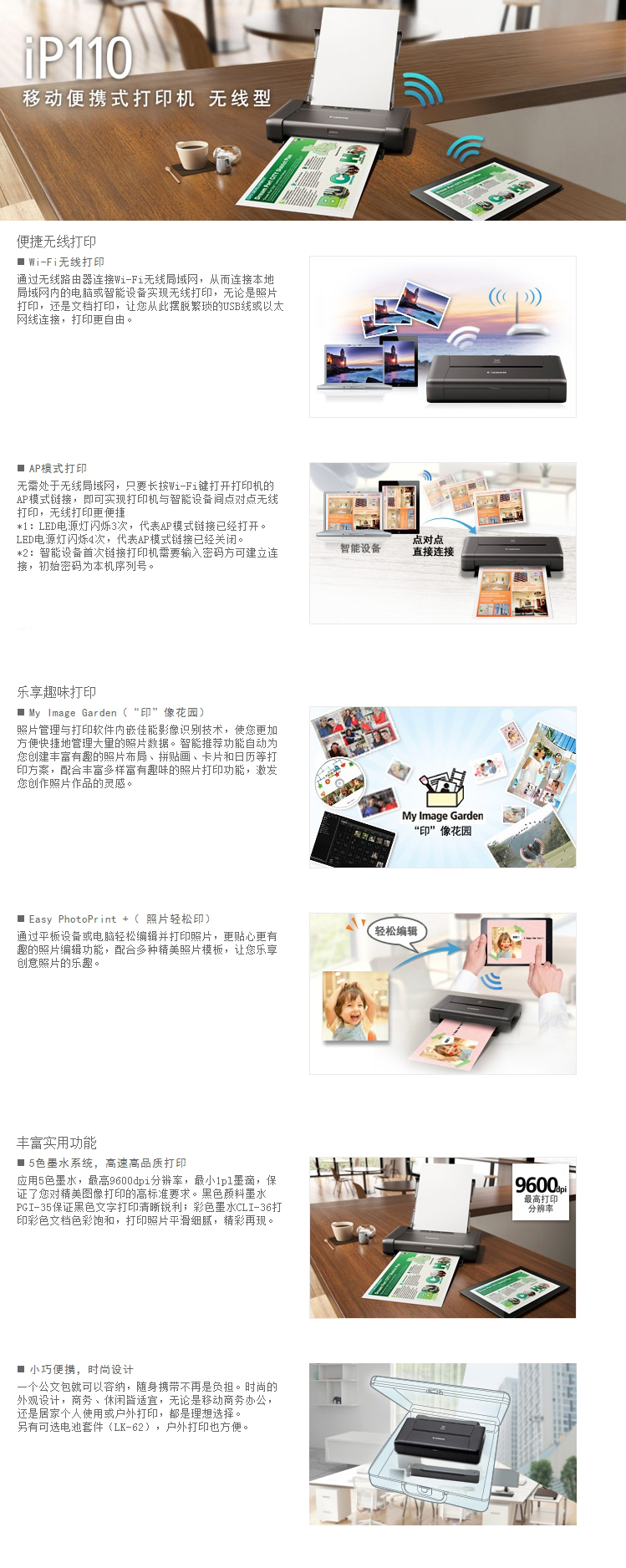 • 商品名稱:佳能(Canon)iP110 A4彩色噴墨打印機(jī) 無線打印