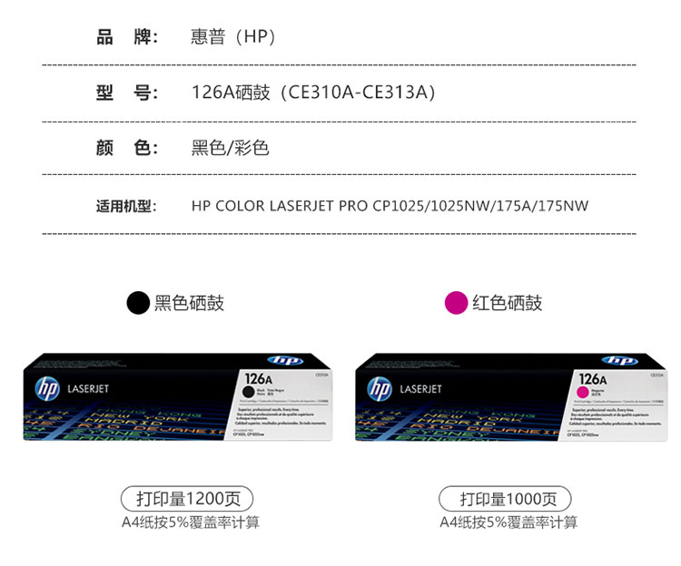 • 商品名稱(chēng):惠普(HP) CE310A/CE311A/CE312A/CE313A 黑彩硒鼓 126A套裝 適用于cp1025/1025nw/M175a/M175NW (kj)